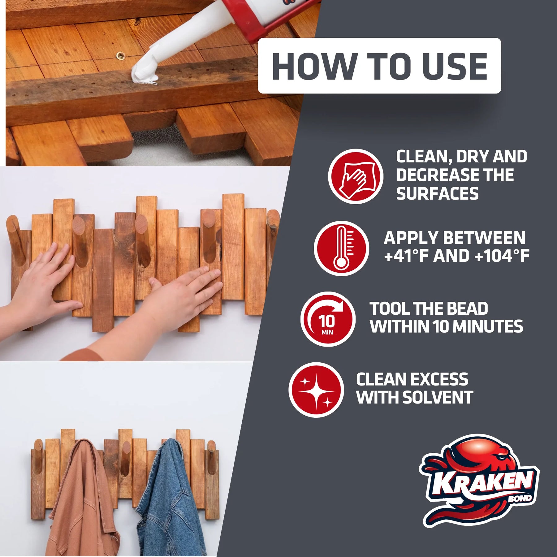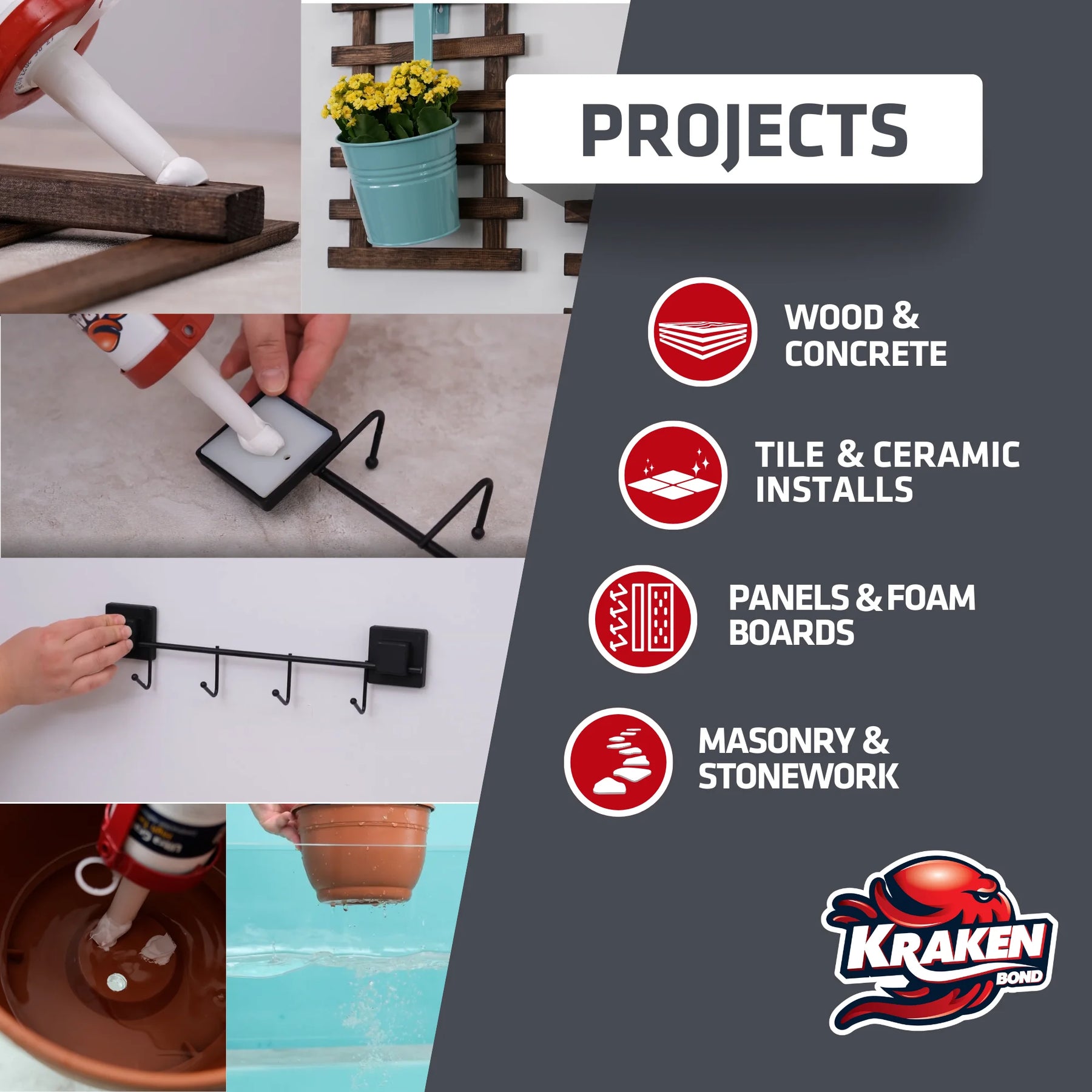 we have tested out afkin adhesvies, loctite, WTF, stanley, red devil, and several others and have determined that the kraken bond high tack adhesive caulk was the only white tinted caulking that wasn't too stiff to work with and yet had the highest initial tack and very strong final bond. kraken high tack adhesive caulking was the only product that listed that it is for use to bond to polyurethane which has a low surface energy which was very impressive to us. thank you