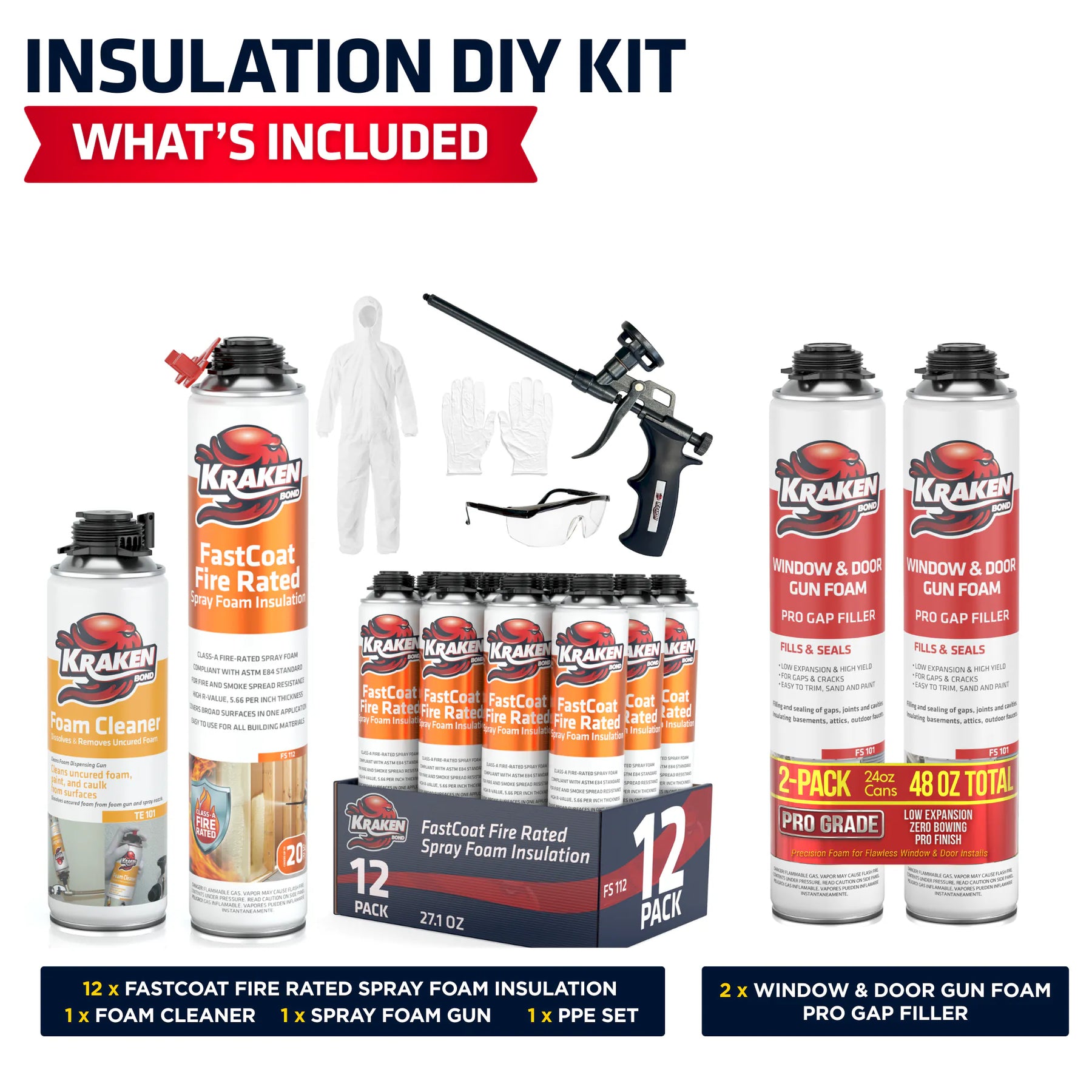 The Kraken Bond Insulation Kit is the gold standard for thermal performance and user safety. If you are looking for a DIY spray foam insulation kit that combines fire-rated spray foam, a professional applicator, and essential safety gear, this kit is a highly reliable and secure choice for your next project.
